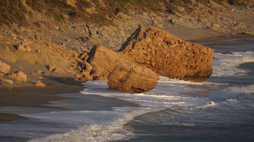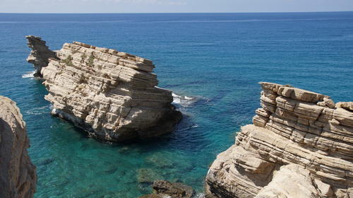 Triopetra bedeutet "Dreifachfelsen", diese Felsformation aus schräggeschichteten, plattenförmigen Sedimenten bildet das östlichen Ende der Bucht.Triopetra-Beach gehört zum Süden des Bezirkes Rethymnon / Akoumia, dort sind wir zu Hause!